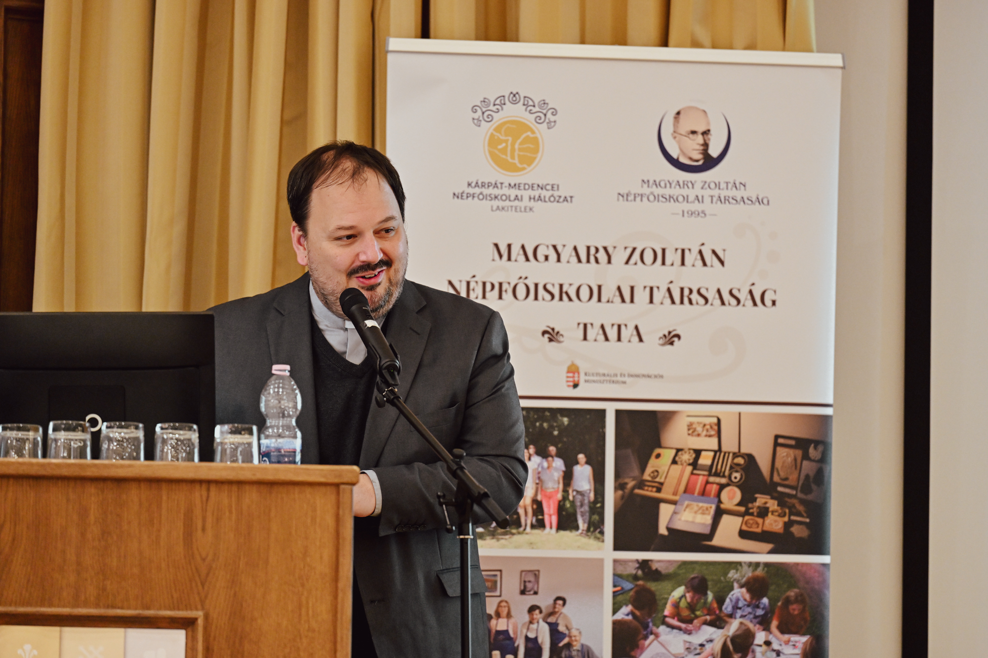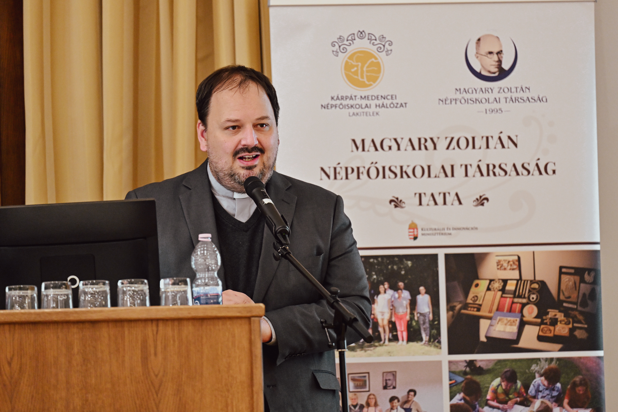 Dr. Sárospataki Máté egyetemi docens, a Magyar Agrár- és Élettudományi Egyetem tanszékvezetője elsősorban az esztergomi tájban megjelenő szakralitásáról beszélt. Előadásában többek között a szakrális helyekről, a tájban megjelenő szenttiszteletről, a magyar táj és szakralitás viszonyáról beszélt. – A szakrális szobrok a magyar történelem olyan hagyatékai, sarokkövei, amelyek örökségvédelmi, tájépítészeti és kulturális szempontból jelentős nemzeti értékeket képviselnek, ezért különösen fontos kutatásuk, megőrzésük és áthagyományozásuk az utókor számára. Ha nem értjük a magyar táj szentjeinek jelentőségét, akkor a magyar tájra vonatkozó tájolvasatunk hiányos és érthetetlen marad. Fontos ismerni a hagyományokat és miérteket, hogy tudatosan és otthonosan járhassunk a magyar vidékeken, értő módon olvashassuk a táj jeleit – magyarázta.