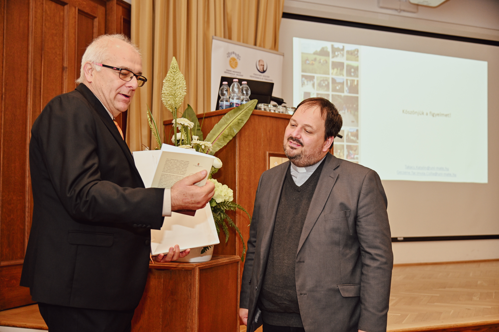 A szakmai előadások során dr. Török Csaba atya Esztergom egyházi értékeiről beszélt, kiemelve, hogy sok olyan különlegességet őriz a város, amelyről még a helyi lakosok is alig tudnak. Elsőként a Főszékesegyházi Kincstárról beszélt, amely Közép-Európa legjelentősebb ötvös- és textilgyűjteménye. Jelenleg is két doktorandusz jár ide kutatni Németországból. Egyikük például a Luxemburgi Zsigmondhoz köthető három szarvserleget kutatja, amelyet nemcsak az tesz különlegessé, hogy Esztergomban egy hármas szett található belőle, hanem azért is kuriózum, mert ezt jelenleg is használják liturgikus célra: a három szent olaj tárolására. A Bazilika plébánosa a Prímási Palotáról és annak kertjéről is beszélt a jelenlévőknek. A dolog érdekessége, hogy egy időben orangerie-vel is rendelkezett a palota, de ezt később lebontották. – A Prímási Palota ad otthont a Keresztény Múzeumnak, ami az egyik legjelentősebb középkori gyűjtemény. A Budapesti Nemzeti Galéria mellett itt van a legnagyobb szárnyas oltár beleértve a garamszentbenedeki úrkoporsót is – magyarázta a plébános. A Főszékesegyházi Kincstár igazgatója még számos egyéb érdekességről is beszámolt előadásában, amelyek mindegyike azt bizonyítja, hogy Esztergomba érdemes ellátogatni, hiszen rengeteg egyedülálló kincset őriz a város.